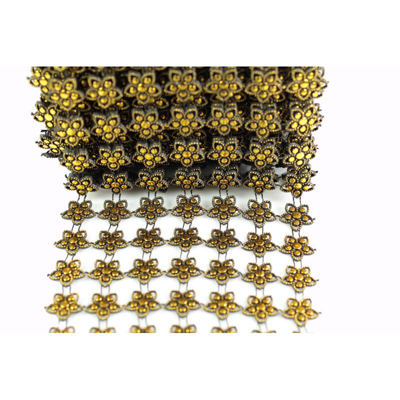 Tira tachuela forma flor15mm 7 lineas x50cm pl,oro