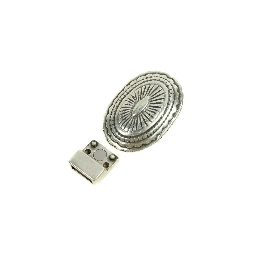 Cierre imán zamak baño plata oval labrado 37 x 26 mm pase 10 x 2.5 mm x 1 und