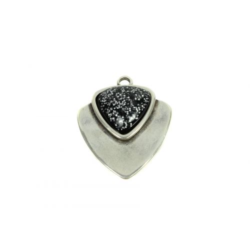 Colgante Rombo Zamak baño plata y Resina purpurina 48 x 39 mm por 1 unid Negro Plata