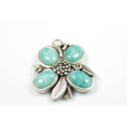 Colgante flor 57x51mm cuatro turquesas oval x 1 und